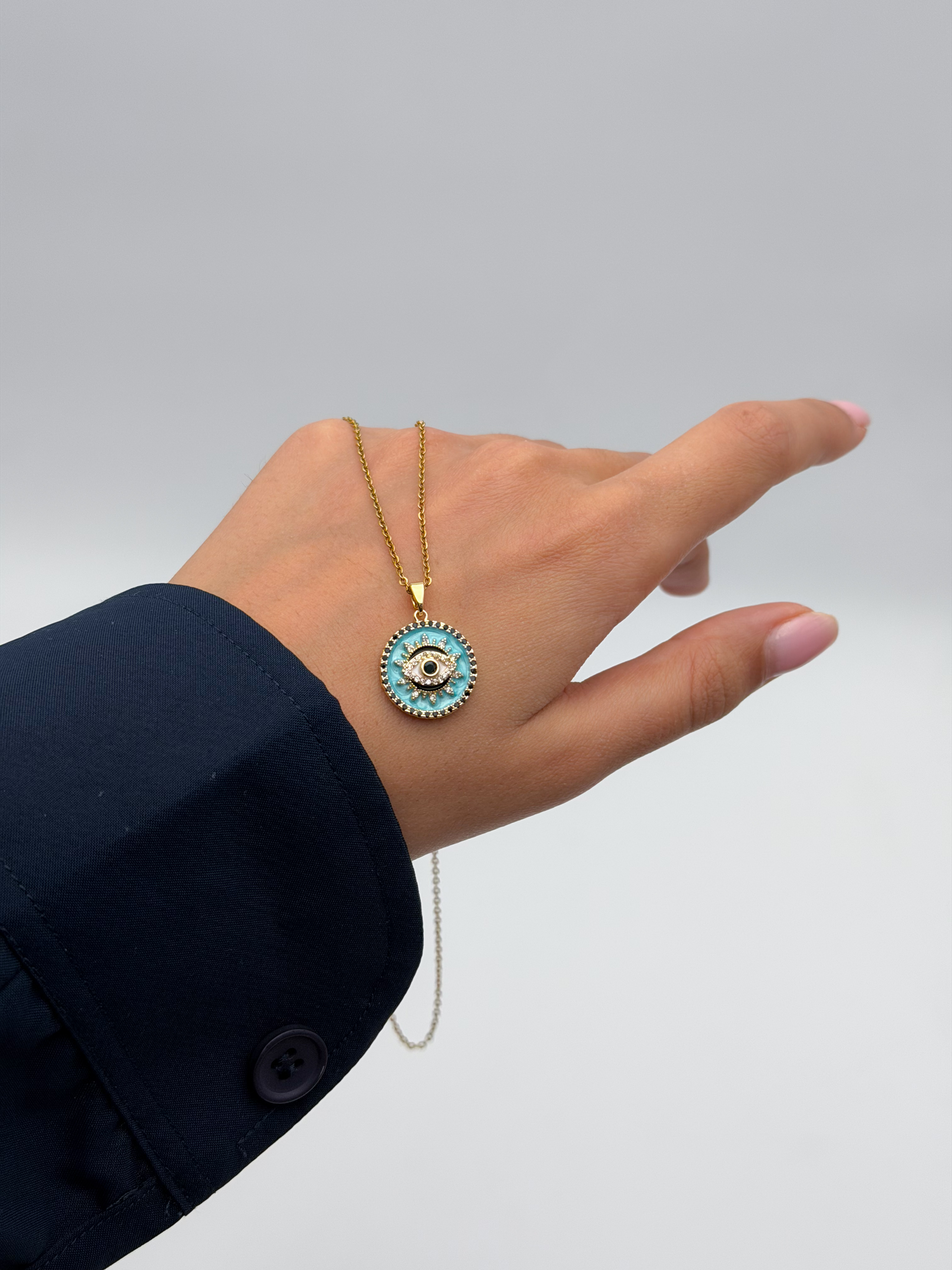 گردنبند چشم نظر | زنجیر استیل ، پلاک ابکاری،ضدحساسیت،