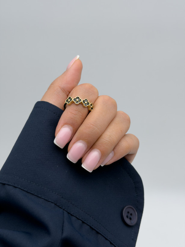 انگشتر مجلسی گل ، فری سایز ، مناسب هرسایز انگشتی ، از پشت قابلیت بازوبسته شدن دارد ، جنس ابکاری رادیوم، نگین مخراج کاری ، ضدحساسیت