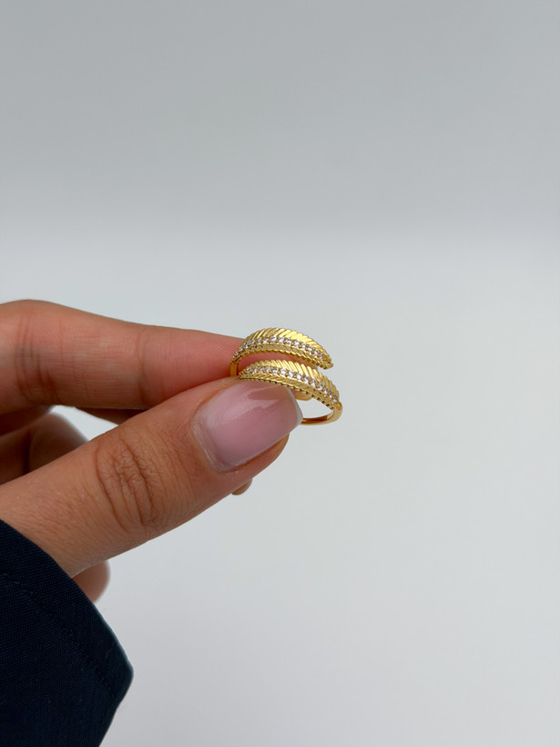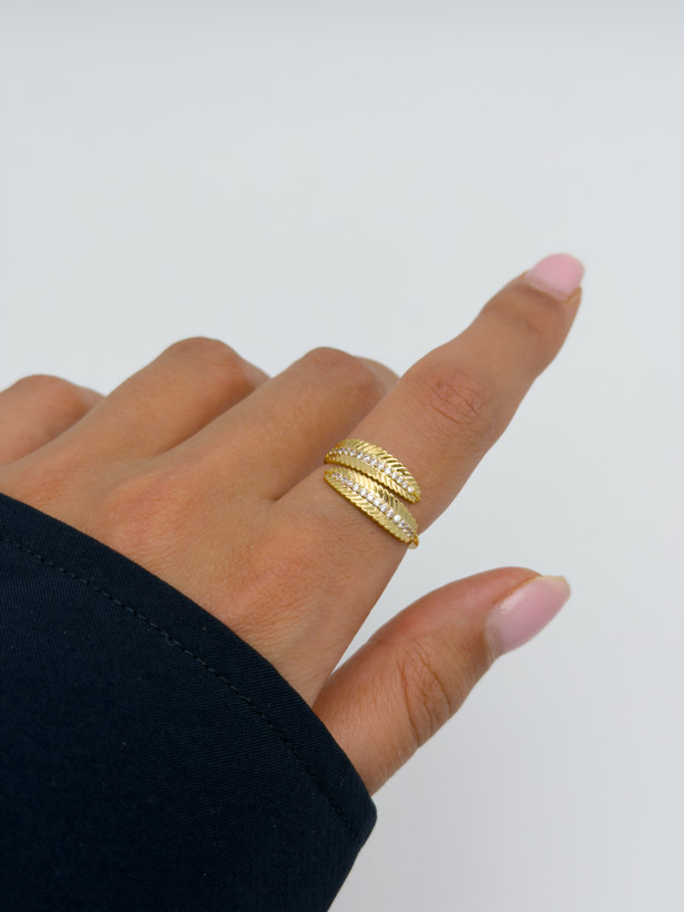 انگشتر مجلسی برگ ، فری سایز ، مناسب هرسایز انگشتی ، از پشت قابلیت بازوبسته شدن دارد ، جنس ابکاری رادیوم، نگین مخراج کاری ، ضدحساسیت