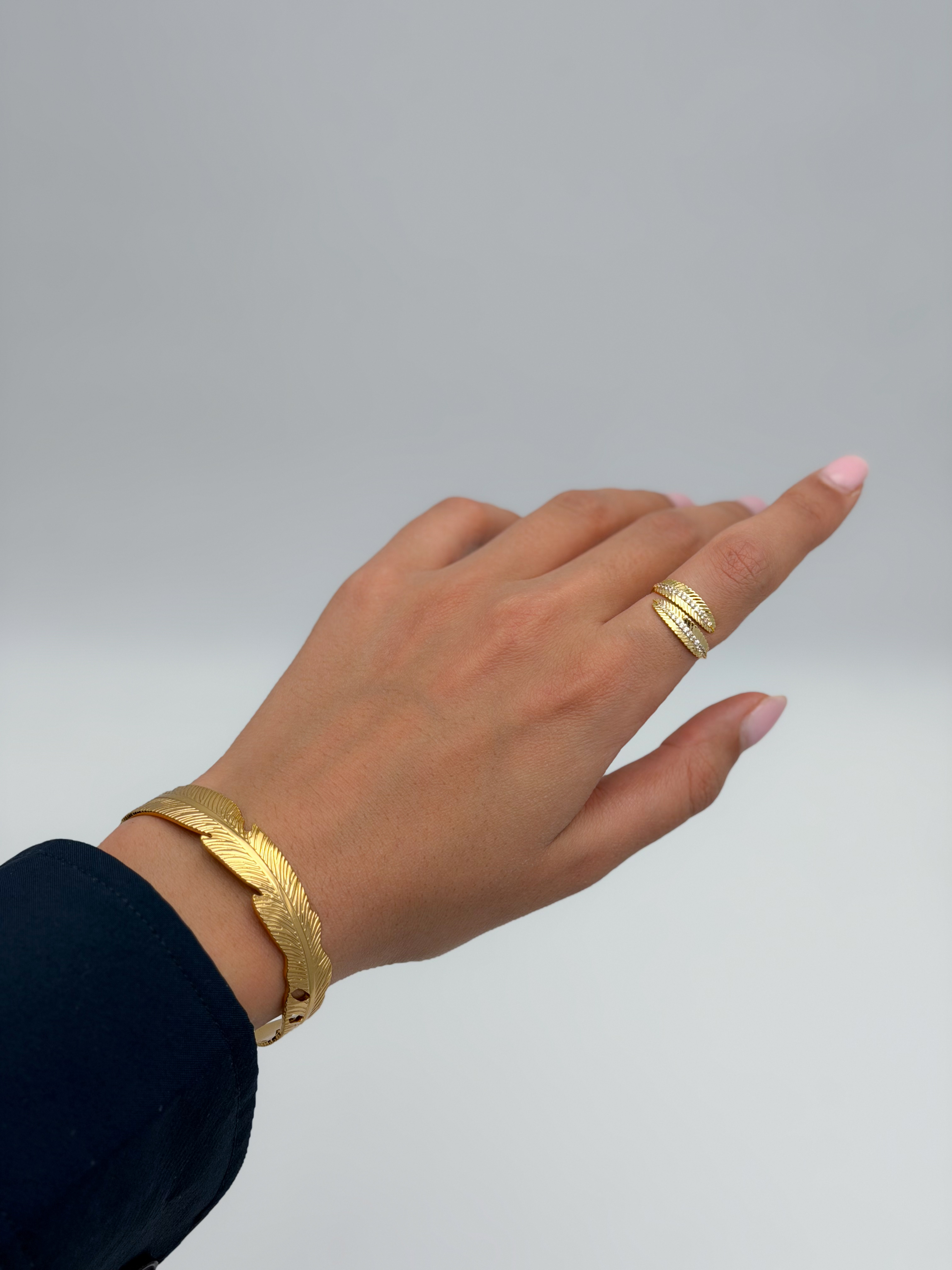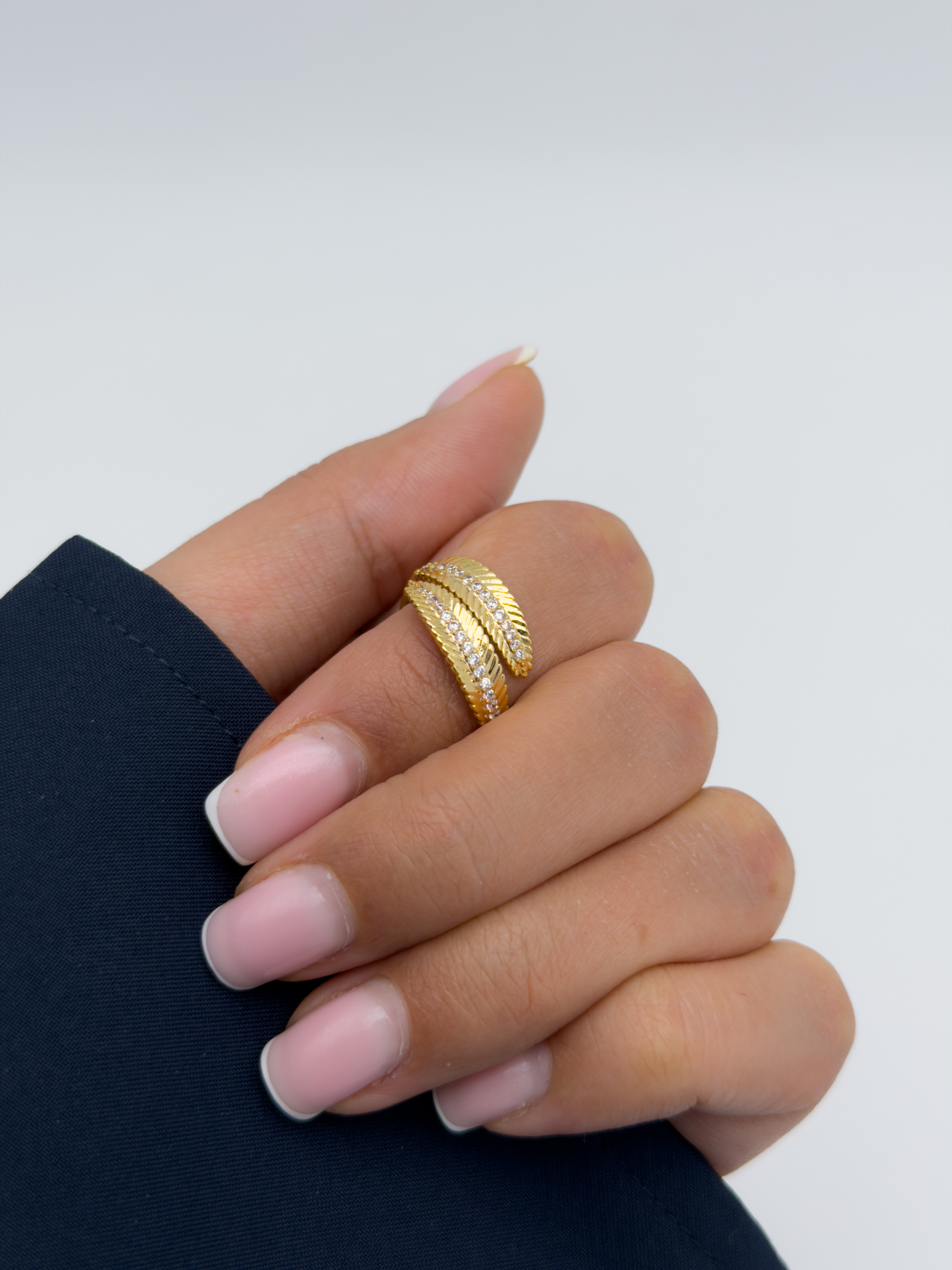 انگشتر مجلسی برگ ، فری سایز ، مناسب هرسایز انگشتی ، از پشت قابلیت بازوبسته شدن دارد ، جنس ابکاری رادیوم، نگین مخراج کاری ، ضدحساسیت